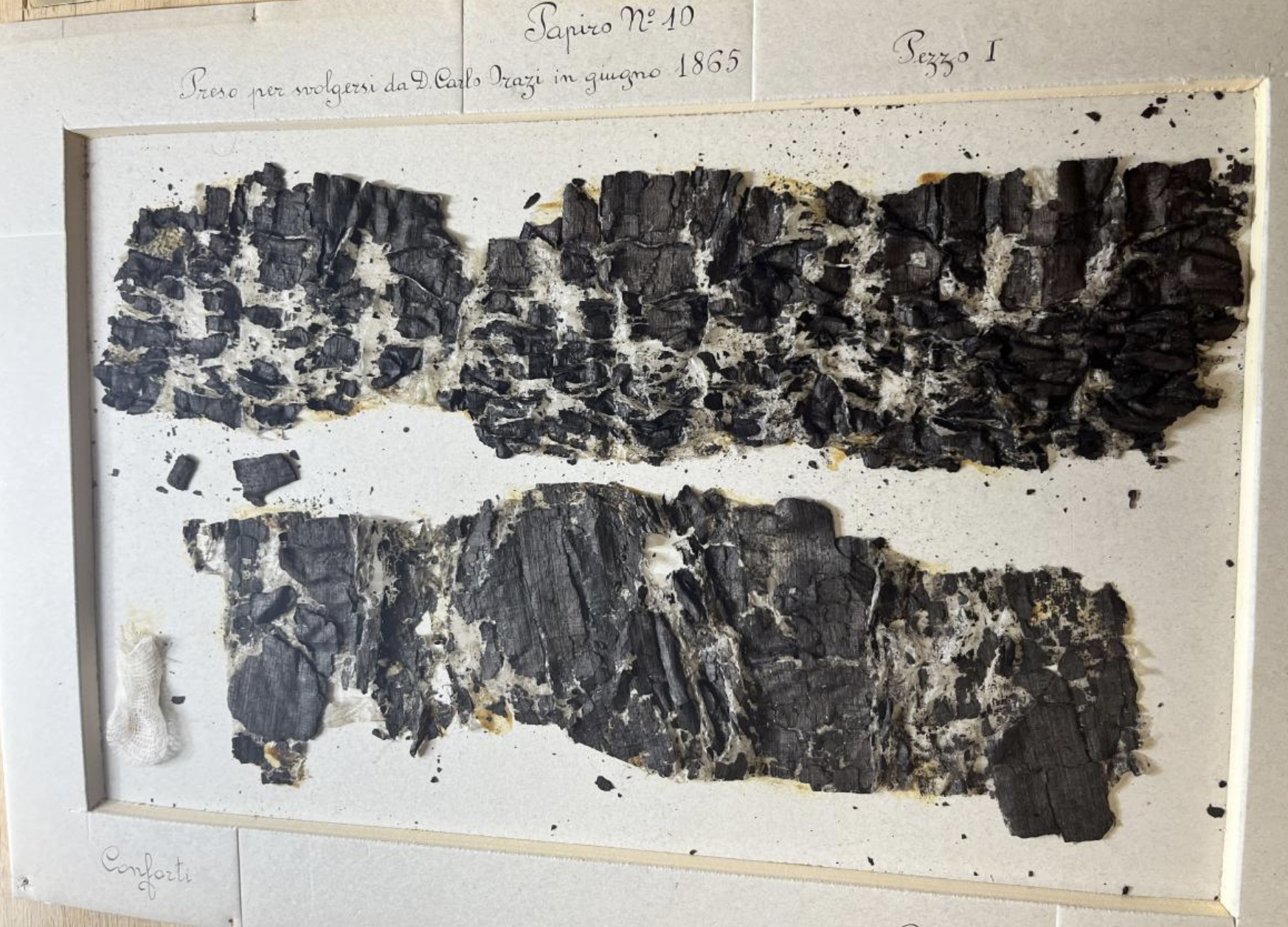 Otros rollos completos se intentaron separar cortándolos por la mitad o desplegándolos cuidadosamente, terminando en fragmentos que se intentaban clasificar y ordenar como el papiro nº 10.