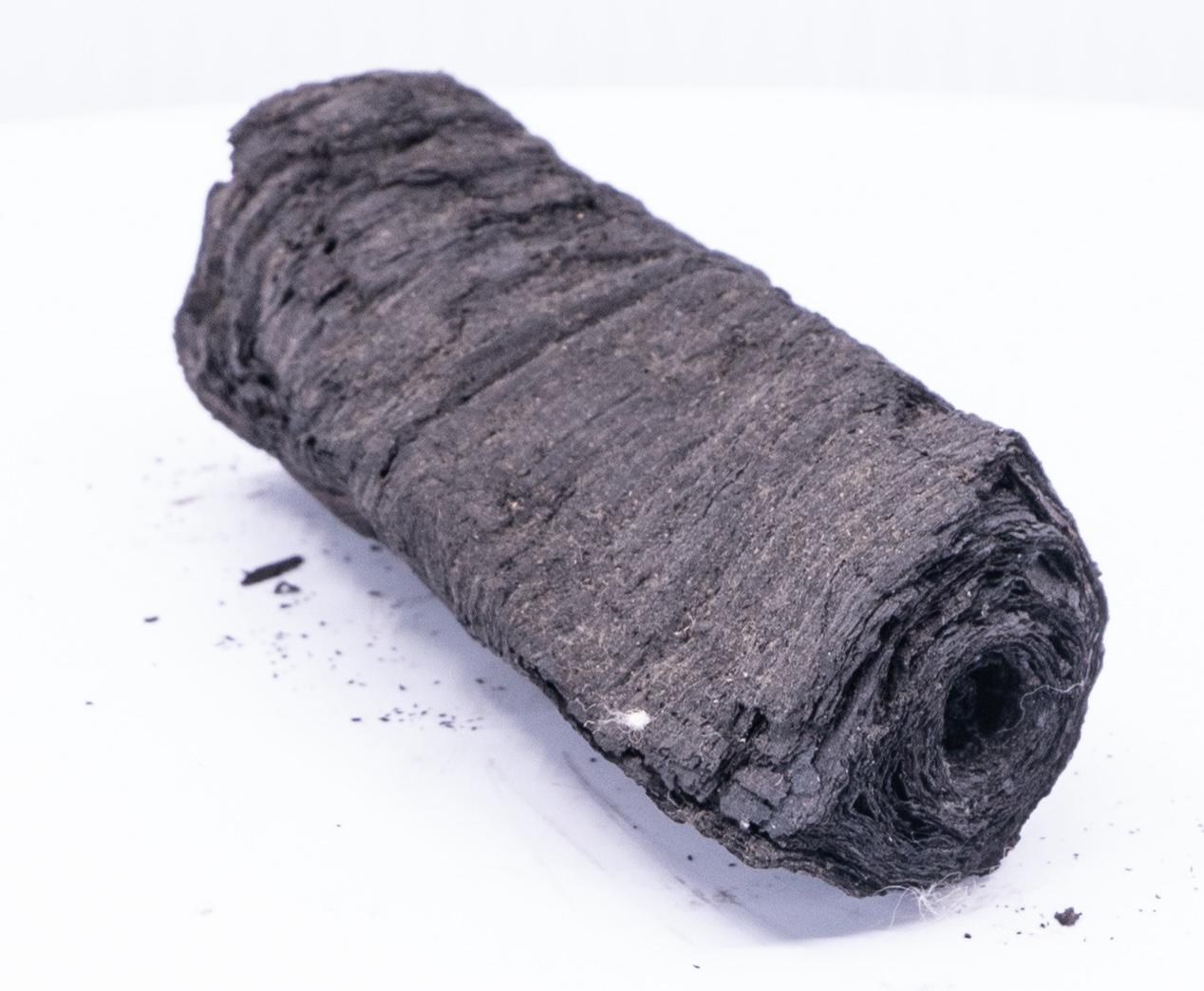 Y un último ejemplo de otro rollo, deformado y solidificado por la carbonización.
