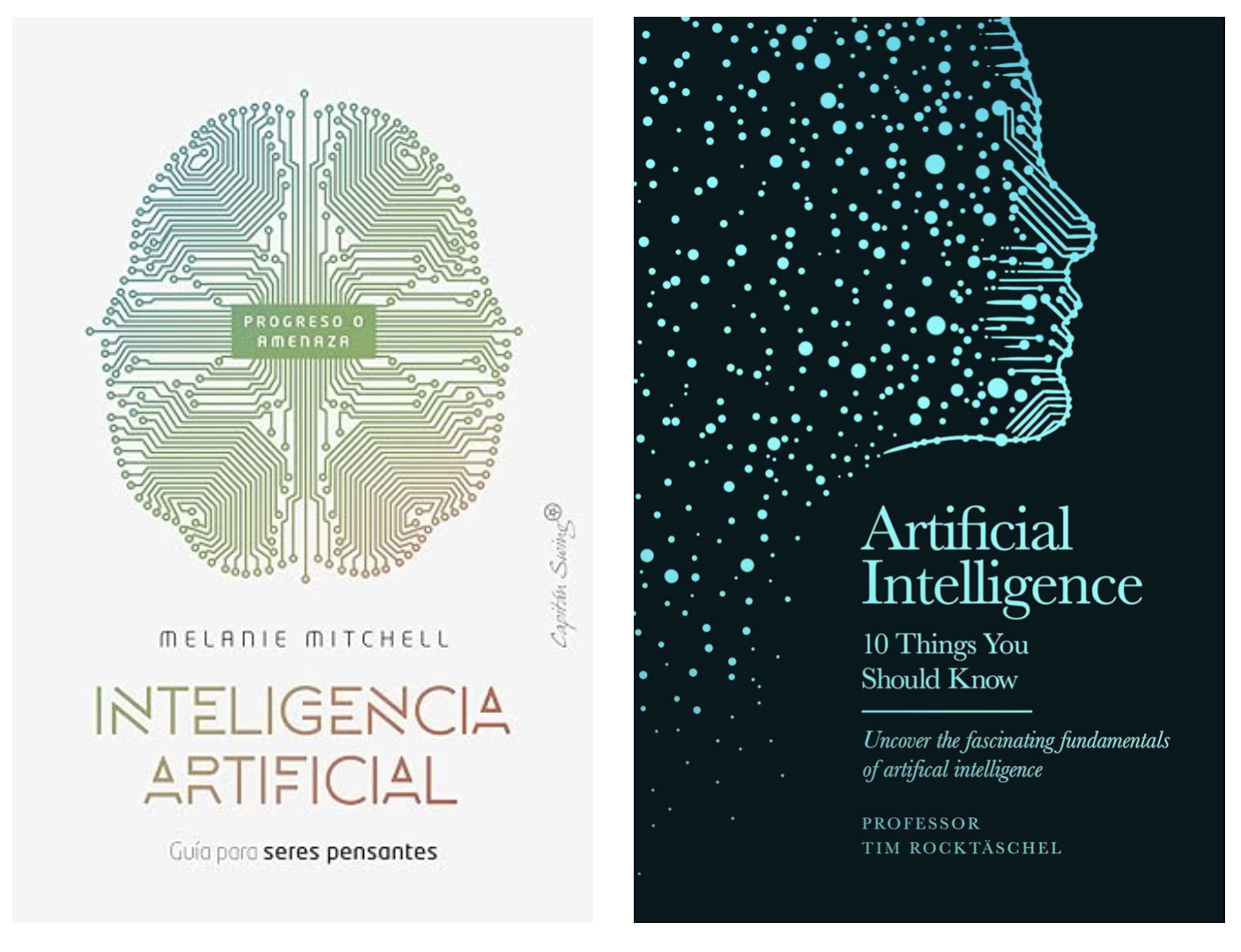 Estos últimos días he estado leyendo dos libros muy recomendables sobre inteligencia artificial: Inteligencia Artificial: Guía para seres pensantes de Melanie Mitchell y Artificial Intelligence: 10 Things You Should Know de Tim Rocktäschel .