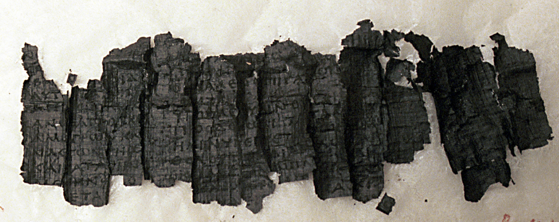 Primera palabra encontrada en uno de los rollos de los papiros de Herculano.