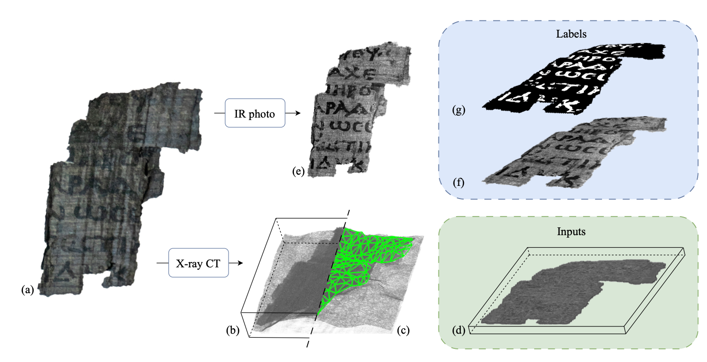 El objetivo de Parsons era obtener una red neuronal convolucional que fuera capaz de obtener la tinta preservada en el papiro a partir de los datos volumétricos de un escaneo 3D. Para realizar el entrenamiento de la red neuronal, se utilizaron fragmentos separados del papiro en los que la tinta era visible, así como sus escaneos 3D volumétricos.