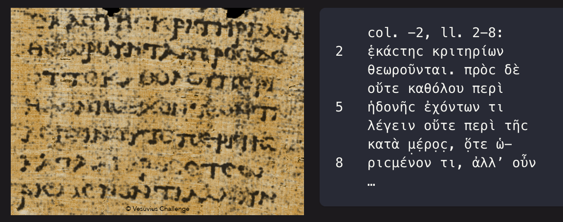 El 25 de abril leí una noticia curiosa: “Un papiro de Herculano revela el lugar preciso de la tumba de Platón” [Deciphered Herculaneum papyrus reveals precise burial place of Plato - arstechnica.com]. Ya había leído o oído hablar sobre estos papiros, por ejemplo, en la explicación de María Ribes en el episodio 451 de Coffee Break. Pero no lo había mirado en profundidad. Quise enterarme bien, me puse a buscar en la web y al final me encontré con una historia fascinante que tenía que compartir: cómo una competición de Inteligencia Artificial ha permitido desvelar escritos contenidos en papiros carbonizados por la erupción del Vesubio hace más de 2.000 años.